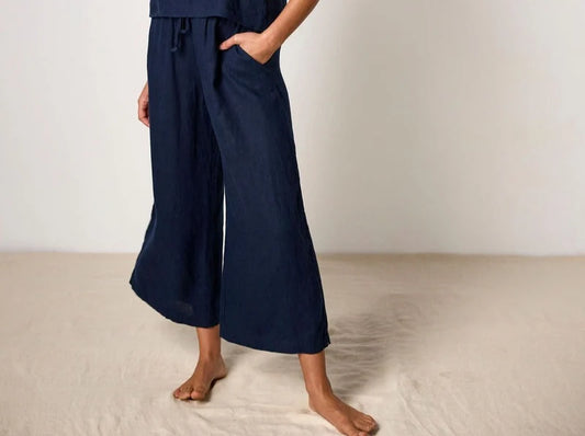 Blusa de lino francesa Bella con cordón ajustable - Azul marino