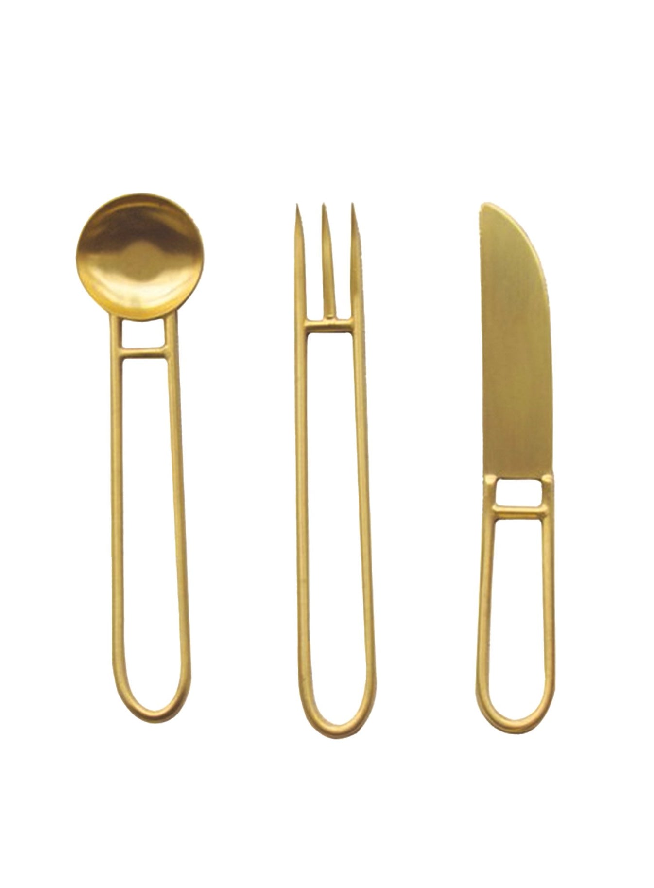 Elaborada meticulosamente a partir de latón bañado en oro. Inspirada en formas geométricas y simbolismo ornamental, esta colección combina sin esfuerzo la estética moderna con sutiles guiños a la artesanía y la tradición. Cada pieza se inspira en el trabajo anterior de Criado en diseño de joyas, creando una fusión ecléctica de artesanía italiana y colombiana. El resultado es un conjunto que encarna el equilibrio, el peso y el porte perfectos, lo que lo convierte en un complemento único y elegante para su mesa.