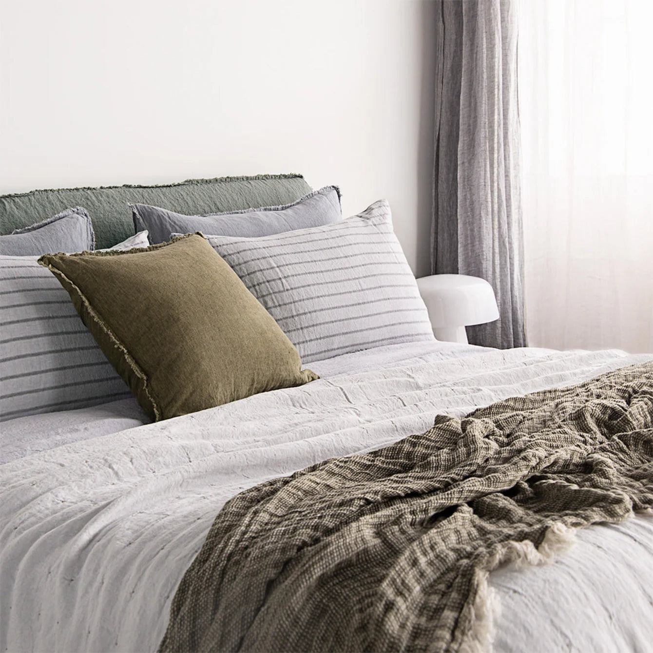 La funda de almohada de lino Basix Stripe en Tempest/Fog tiene una raya gris carbón fresca y gris pálido suave.
