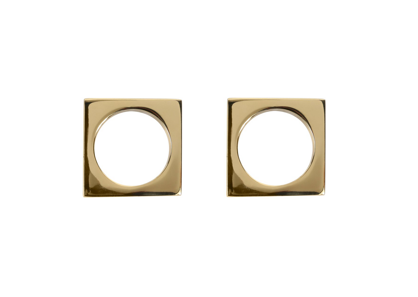 Un círculo en un cuadrado, estos pesados servilleteros de metal sólido encarnan la simplicidad geométrica en su máxima expresión. Se venden en pares de dos y están disponibles en latón macizo o latón plateado.