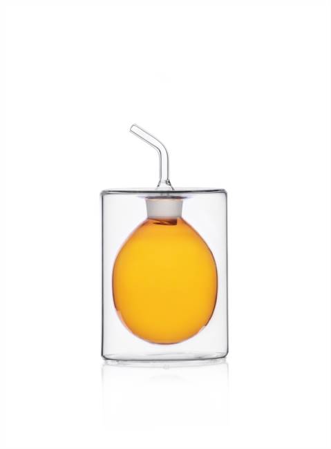 El dispensador de aceite Cilindro está disponible en dos tamaños S y M. También puedes utilizar los dos tamaños como dispensador de aceite y vinagre. Versión de vidrio de borosilicato, de doble pared.