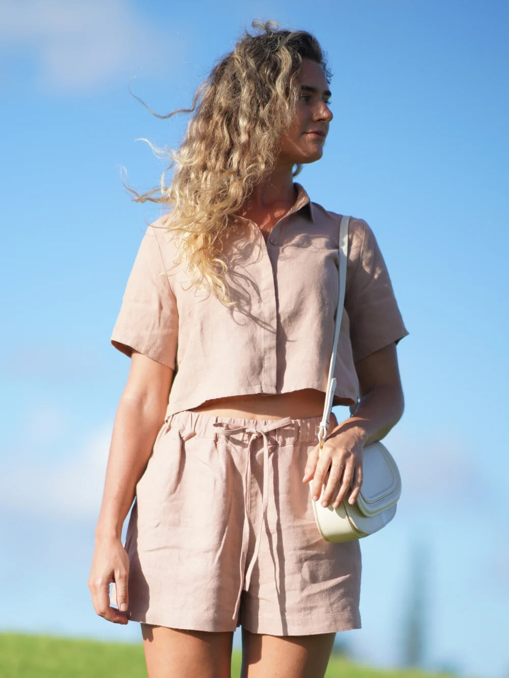 Camisa corta de lino clásica y bonita. Una combinación perfecta de elegancia atemporal y estilo moderno. Diseñada para quienes aprecian tanto la comodidad como la moda, esta camisa corta es una prenda imprescindible para cualquier temporada.