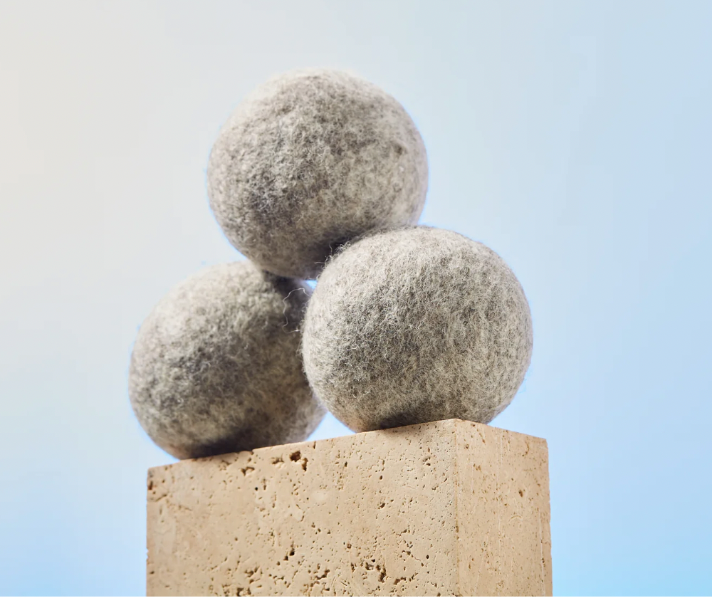 Wool dryer balls gently lift and separate laundry, increasing the airflow and leaving your clothes soft and fluffy. They shorten drying time, reduce static and wrinkles and are fun to juggle with