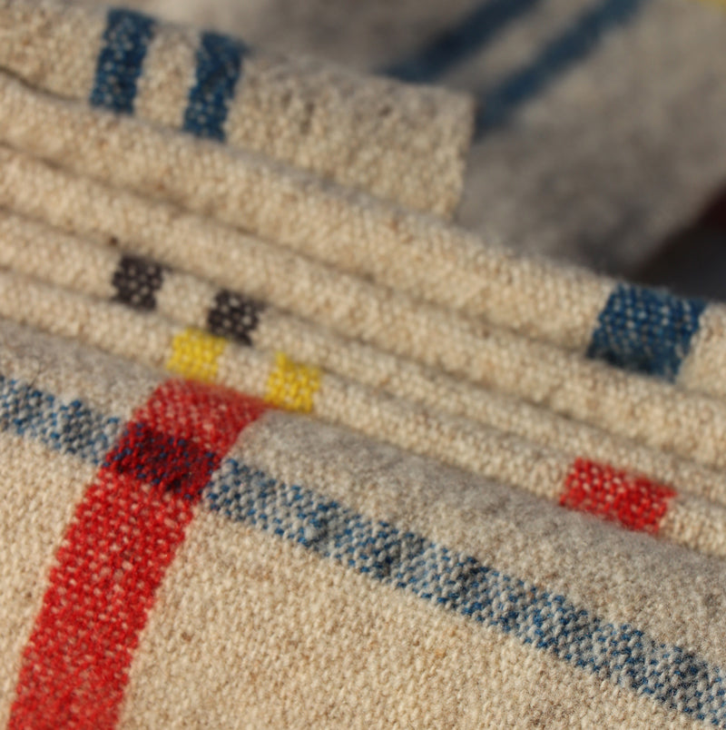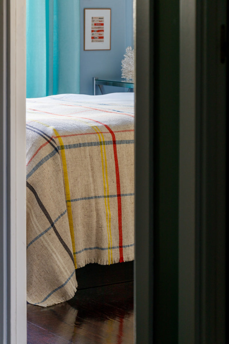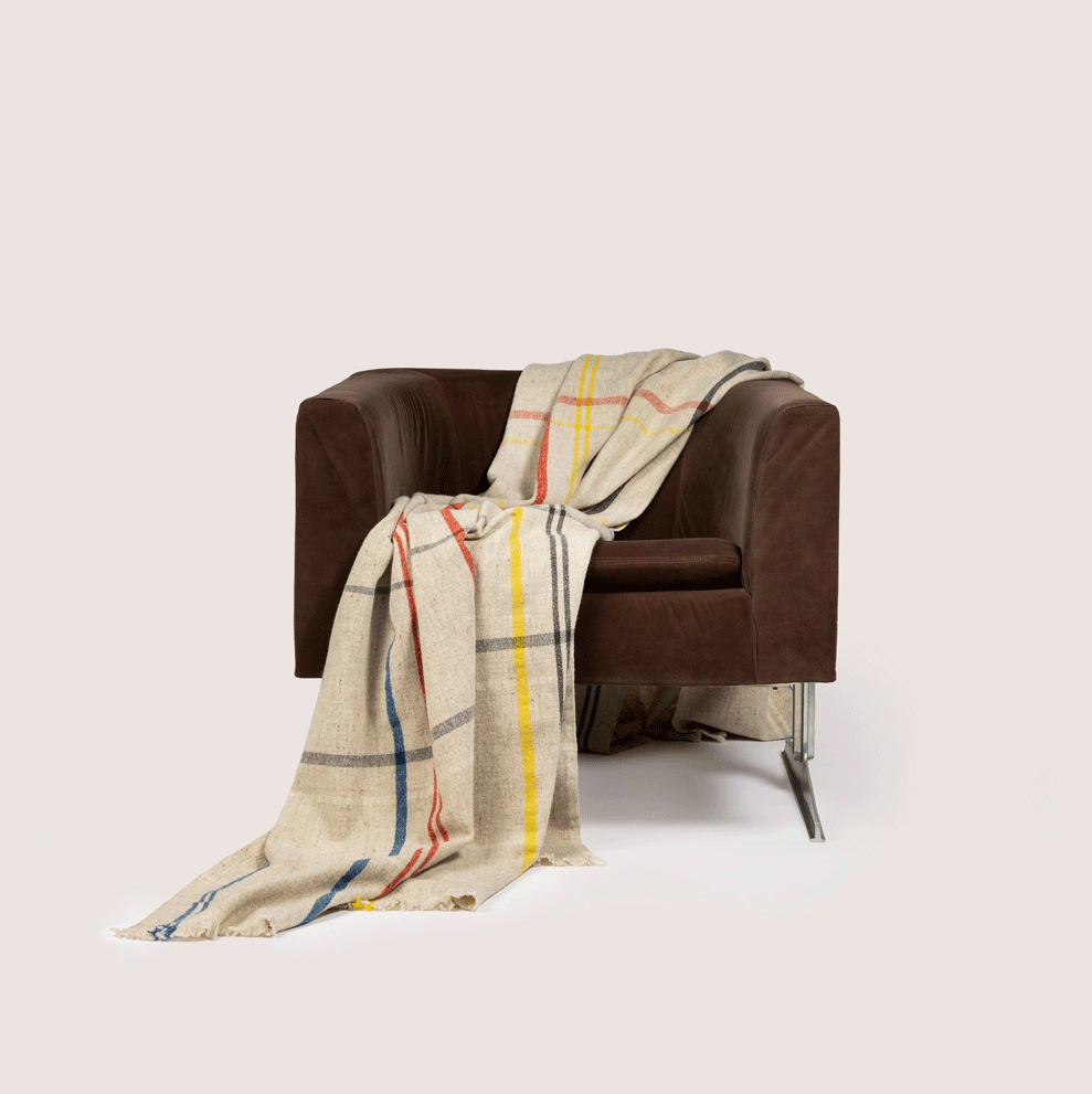 La manta extragrande LABAU de Teixidors está inspirada en los principios de la arquitectura Bauhaus, que integra forma y función, simplicidad y sostenibilidad. Tejida a mano con lana merino de alta calidad, su diseño geométrico en rojo, amarillo, azul, negro y blanco evoca la icónica fachada de la Unité d'Habitation de Le Corbusier en Marsella. La manta LABAU también funciona como cubrecama, añadiendo calidez y estilo a tu ropa de cama.