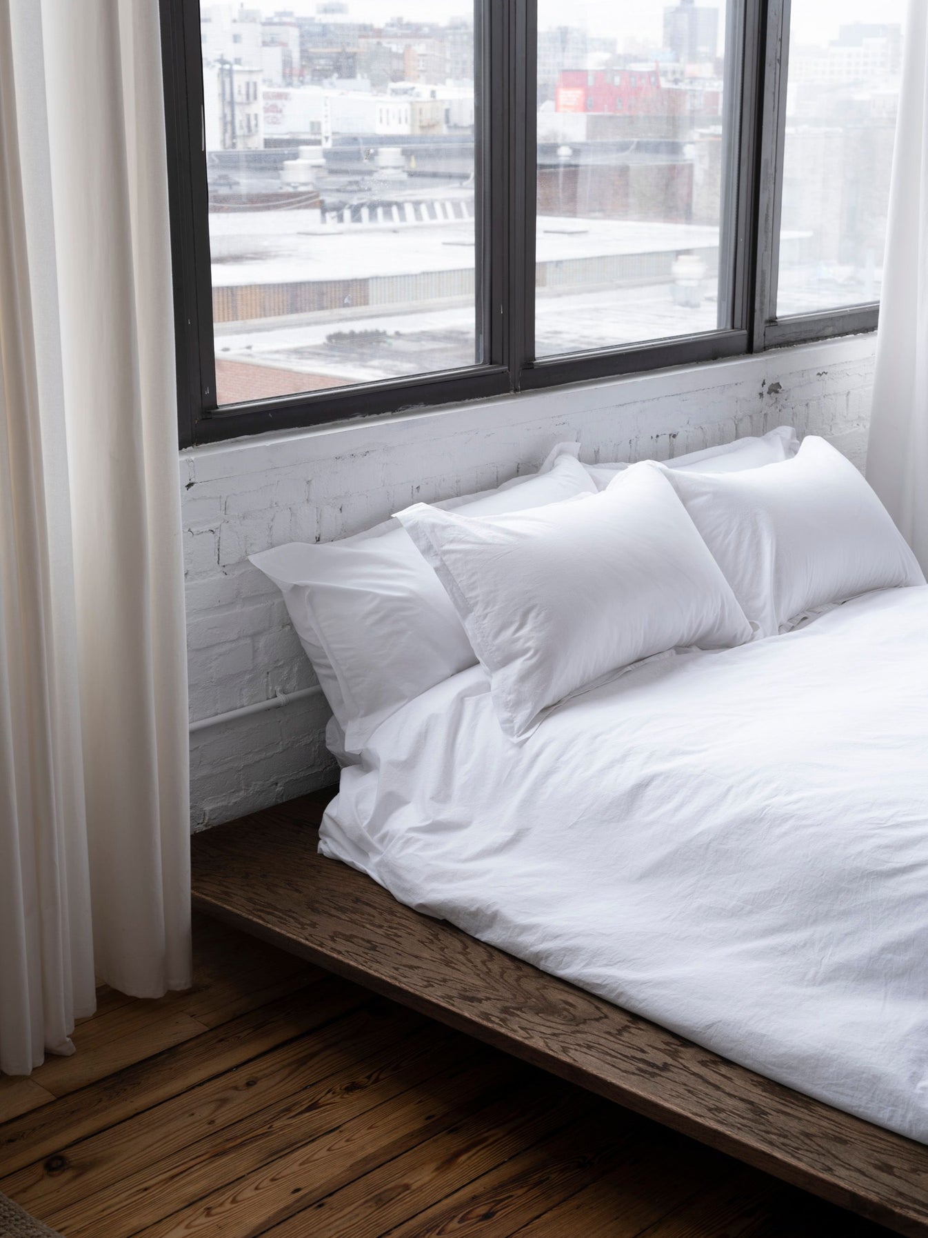 Fabricada en Portugal con 100 % de percal de algodón orgánico de primera calidad , esta ropa de cama ofrece una sensación transpirable y ligera con una textura fresca pero acogedora. El acabado lavado y arrugado mejora la suavidad y brinda un aspecto informal y desgastado perfecto para cualquier estilo de dormitorio.