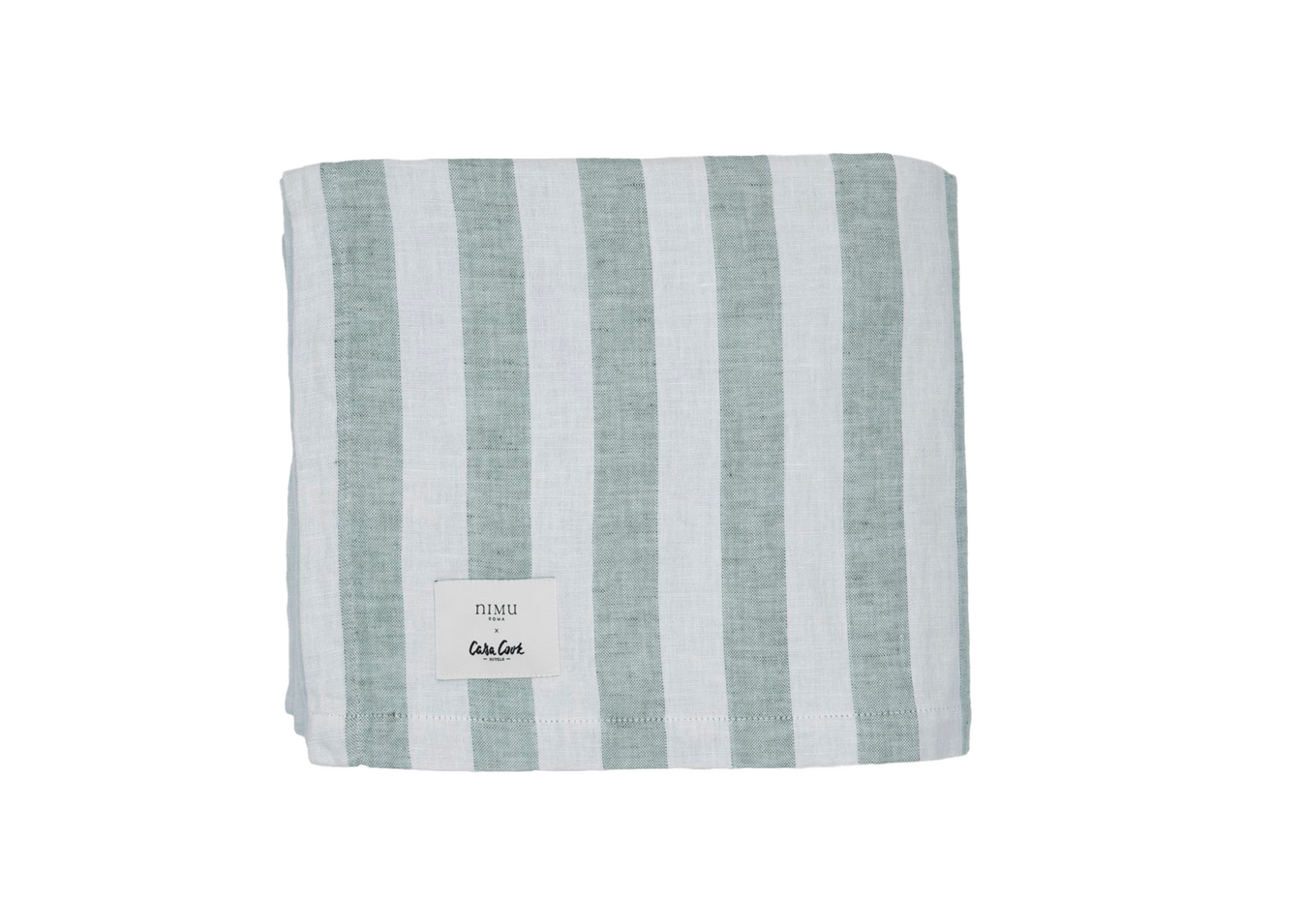 Avec ses rayures vertes et blanches élégantes, cette serviette luxueuse est confectionnée dans un jacquard doux en lin et coton, à la fois doux et résistant au sable et à l'eau de mer. Elle sèche rapidement en même temps.