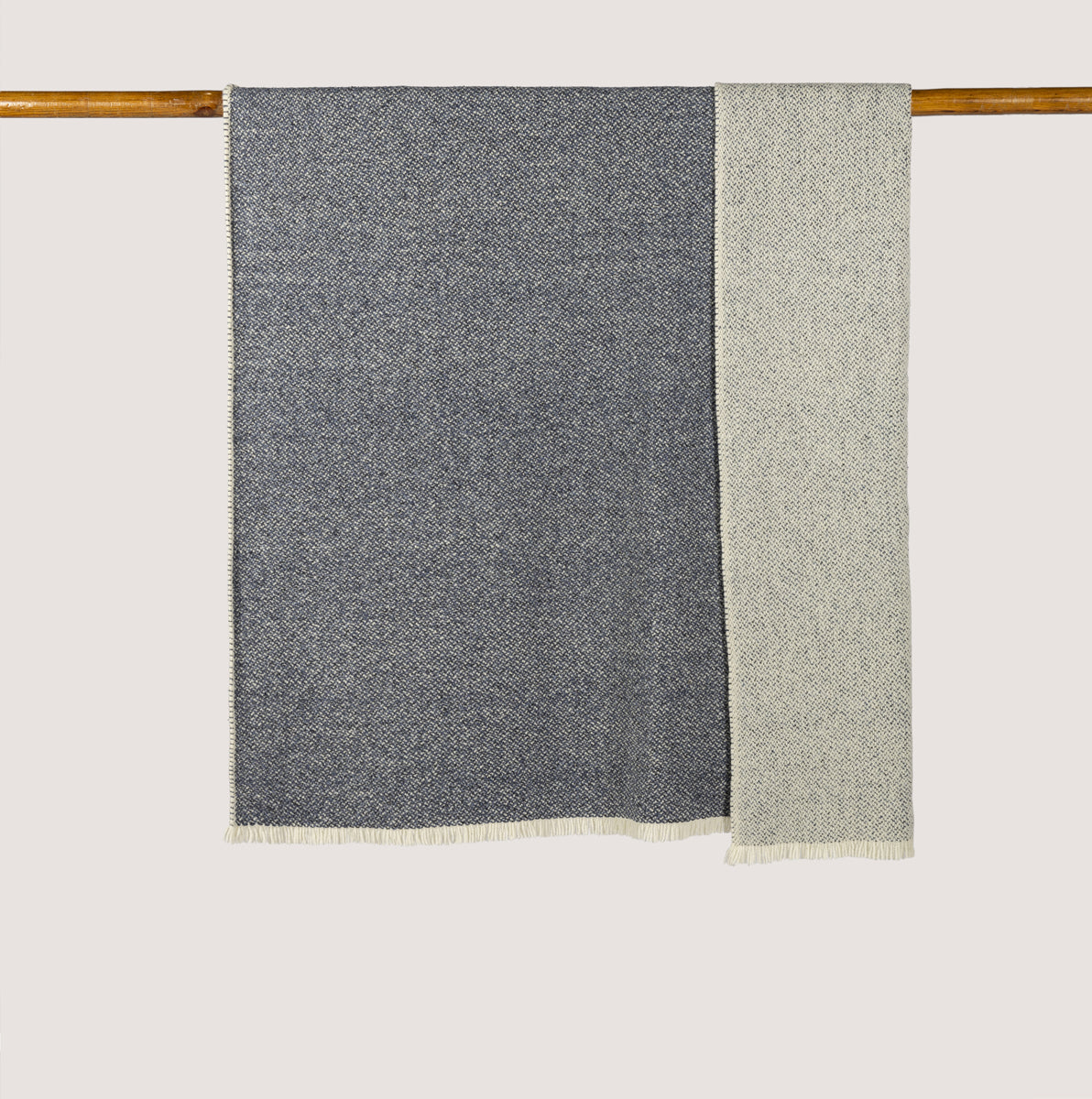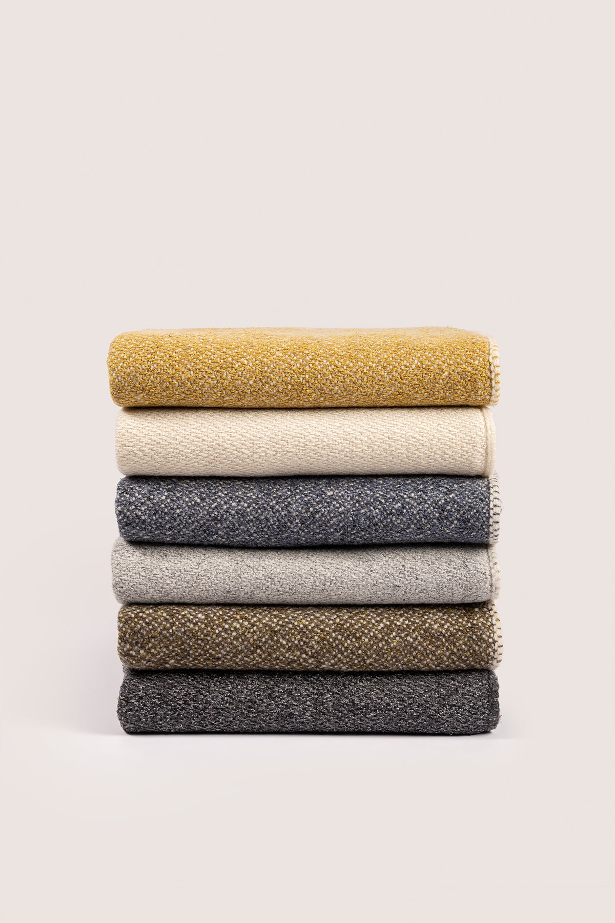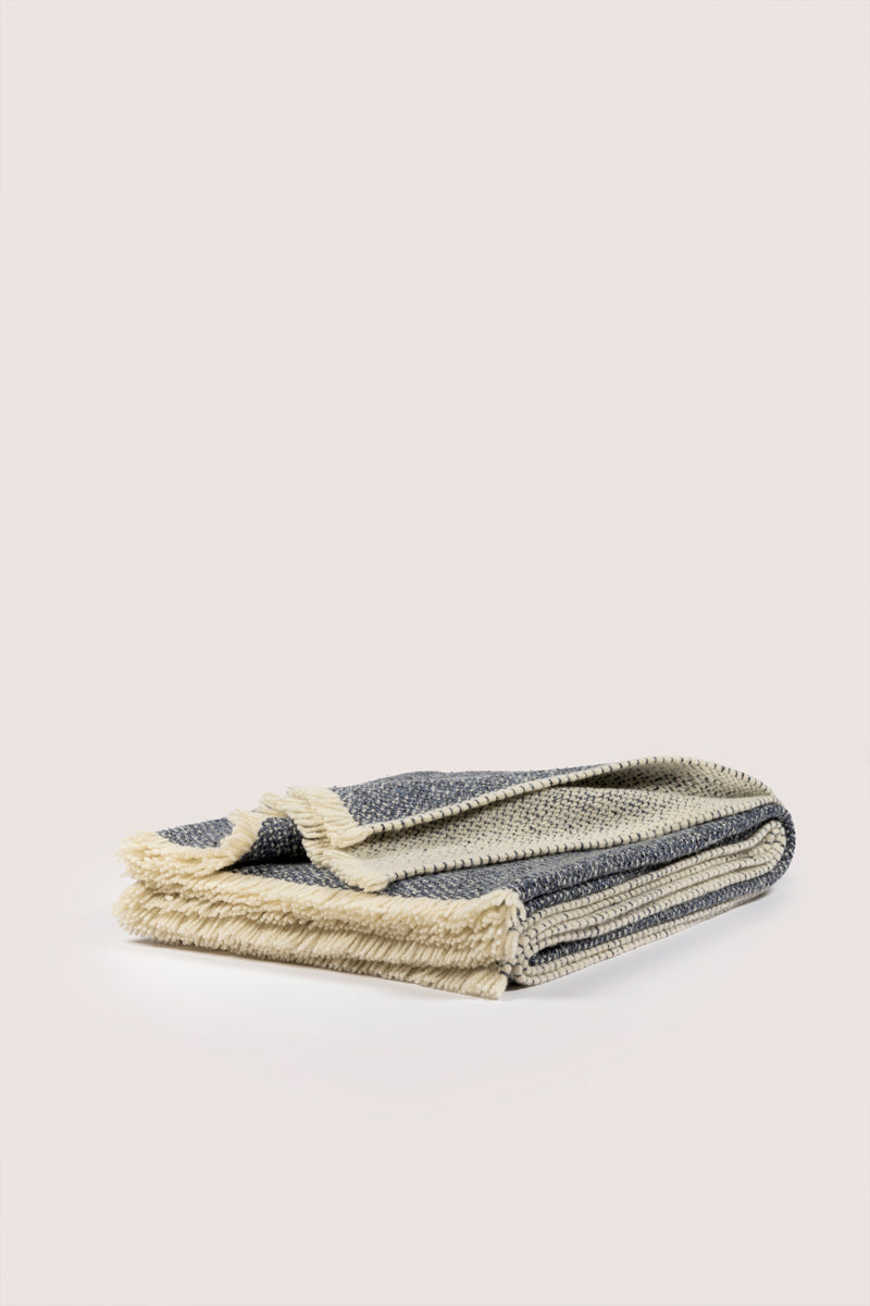 Hera, the throw that envelops your senses in warmth and softness, is the perfect companion for cold days and cozy evenings. Made with 60% locally sourced merino wool and 40% silk, this fabric achieves the perfect harmony of elegance and comfort. The fusion of silk and merino wool creates a luxuriously soft texture that invites you to indulge in pure relaxation. The natural sheen of the silk subtly contrasts with a modern color palette, adding a refined touch of sophistication to any space. Hand-spun edges, meticulously crafted, run the length of the piece, bringing an artisanal charm and an exclusive finish.