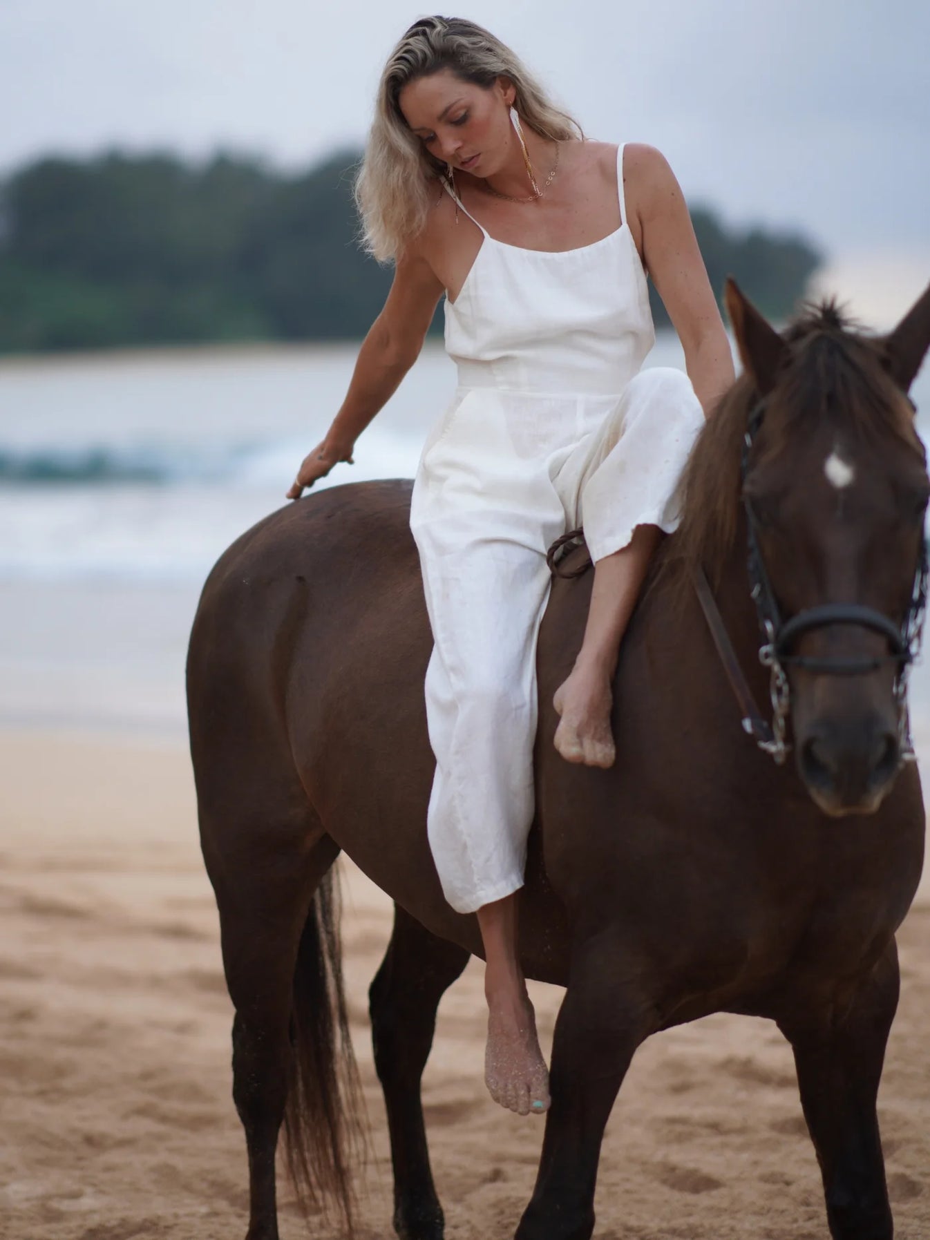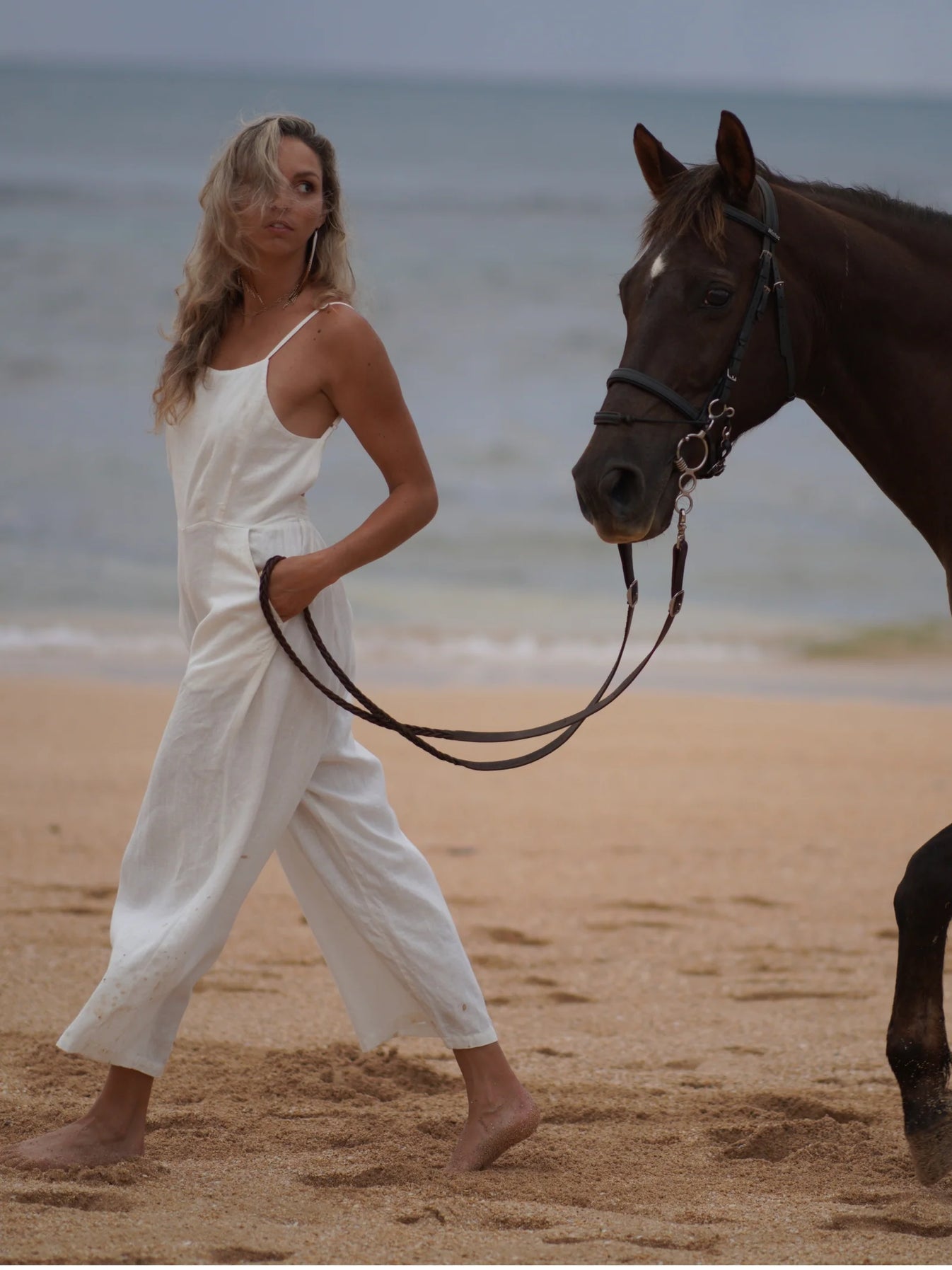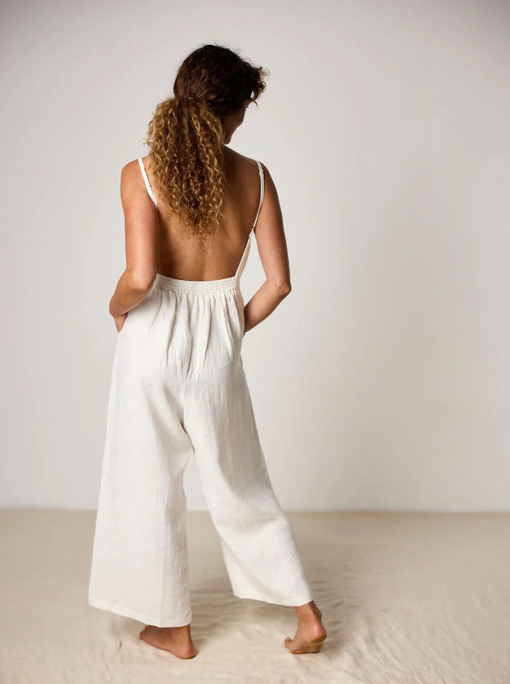 La combinaison Isabella V. est une option étonnante pour la journée comme pour la soirée. Le lin élégant et respirant apporte une sensation de mouvement à notre combinaison, qui est simple et affectueuse. Elle présente une encolure carrée flatteuse et des fronces à la taille avant de tomber sur un pantalon large. Elle est dotée de bretelles réglables et d'un élastique au dos pour personnaliser la coupe. Elle se tourne pour révéler un superbe dos ouvert.