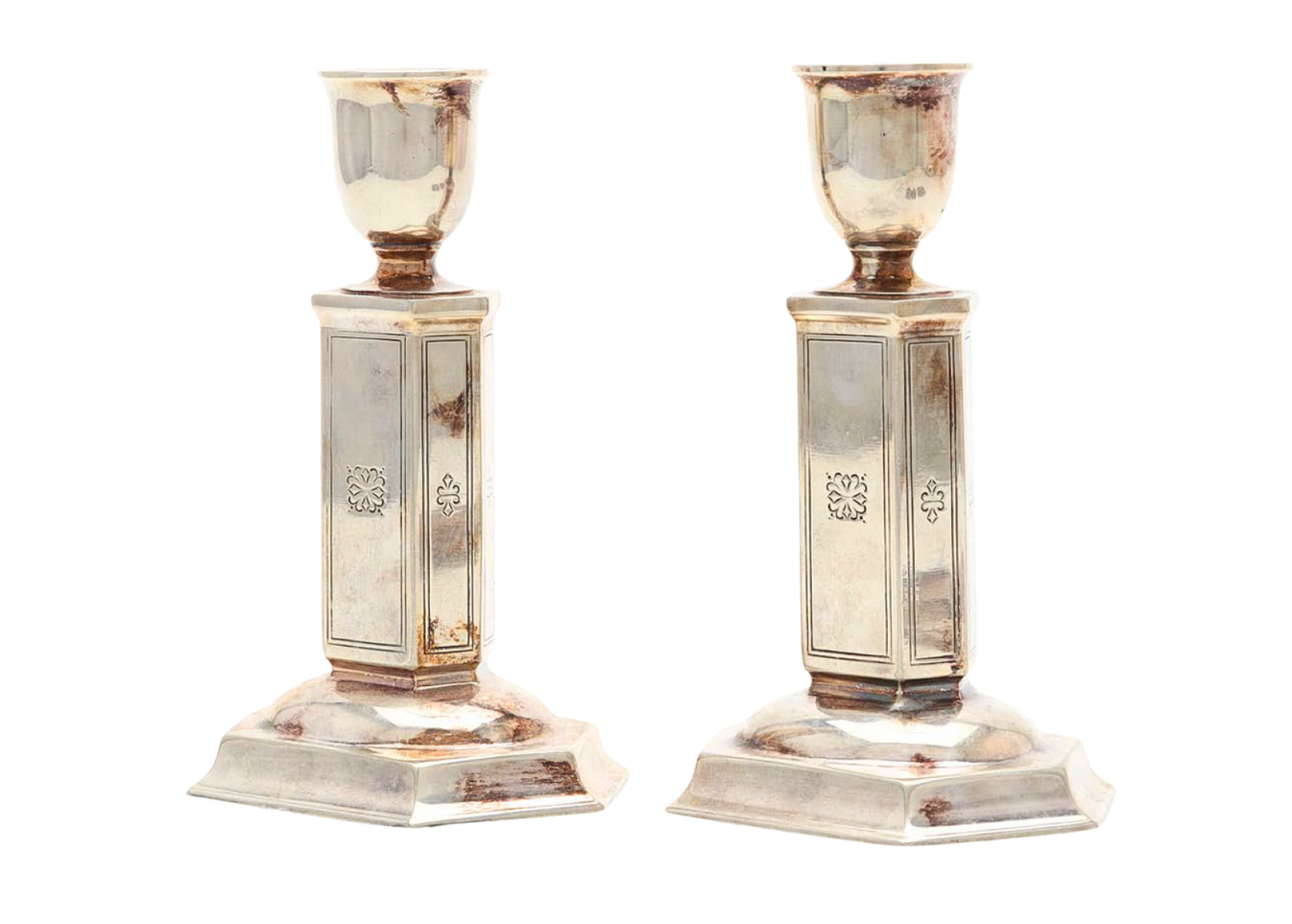 Pair of Nickel Silver Art Deco Candle Holders By Just Andersen for GAB Sweden