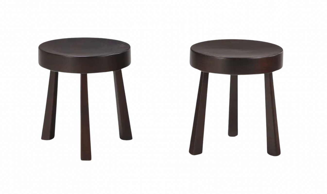 Pair of Brutalist Stained Mahagony Foot Stools