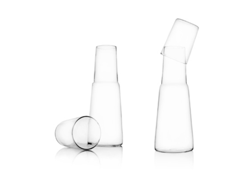 Carafe à eau simple en verre borosilicaté durable. Conçue par Carolina Doni. Le couvercle sert également de verre à boire. Lavable au lave-vaisselle.
