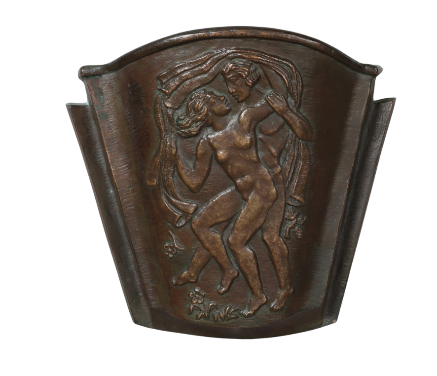 With neoclassical relief scene of a nude couple. By designer Rolf Kjellberg.
