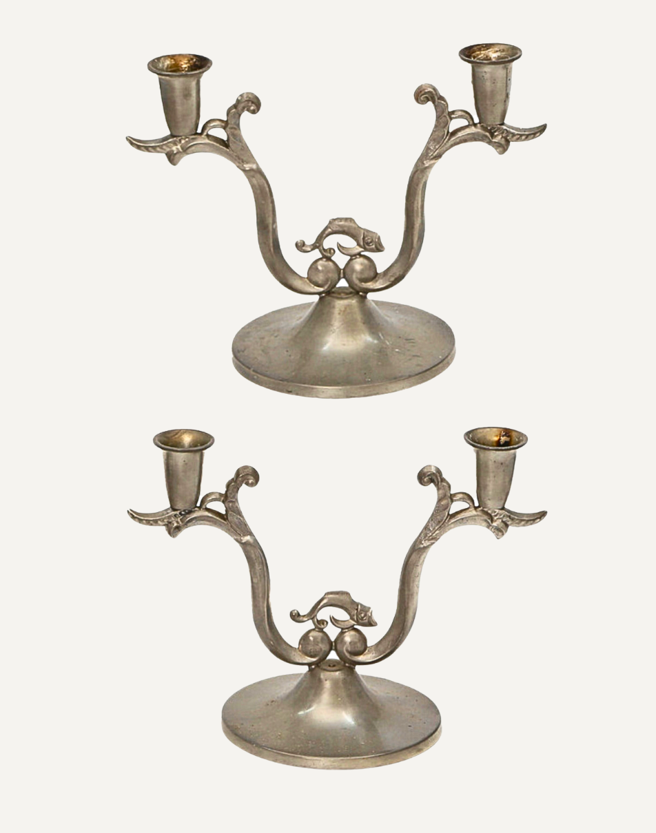 Pair of Swedish Grace Pewter Candlesticks in the Style of Just Andersen