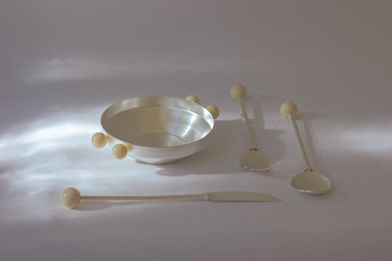 Elevate your table setting with Bowl 13. A small bowl, handcrafted with plated brass, its geometric silhouette narrows at the base for a sleek and minimal aesthetic. The exquisite stone handle introduces a touch of jewelry-inspired sophistication to your tableware. Experience the perfect blend of aesthetics and functionality in our Triangular Bowl 13.